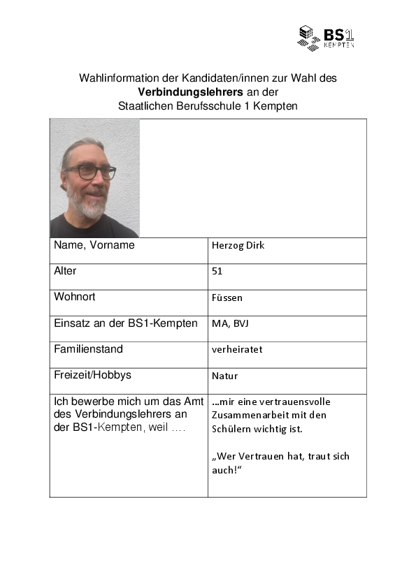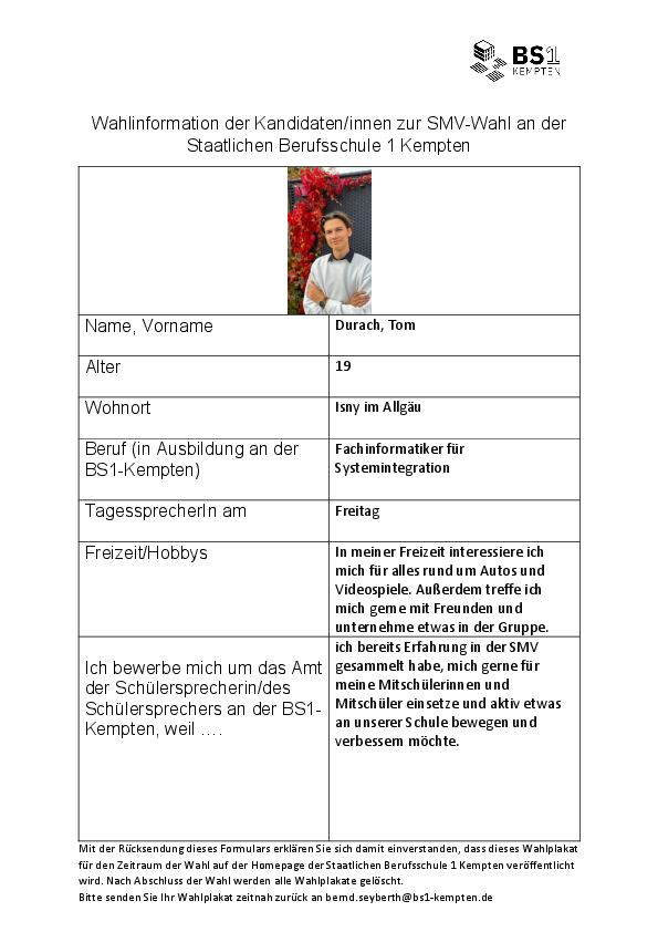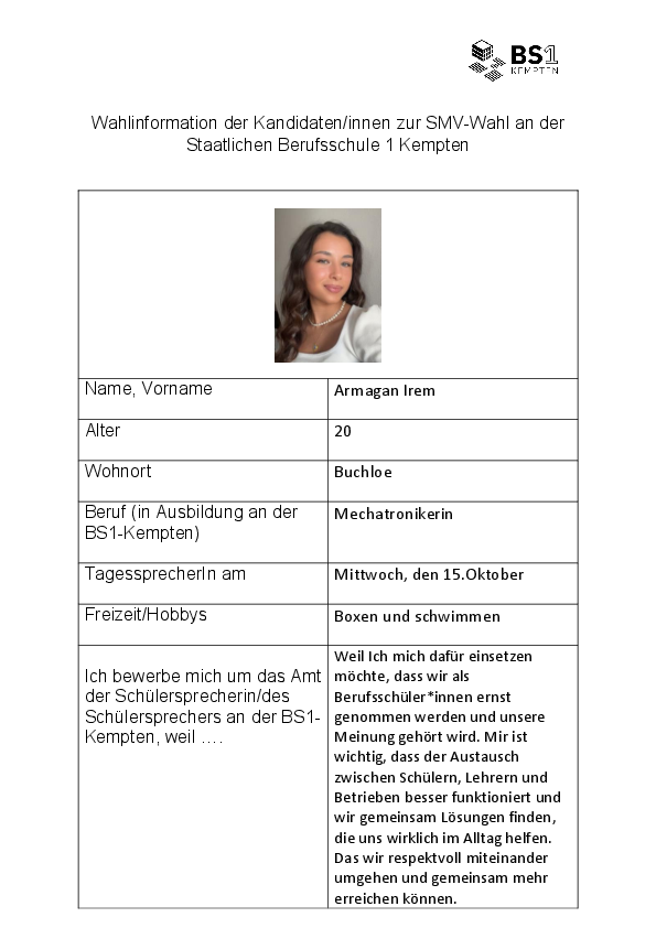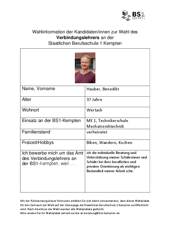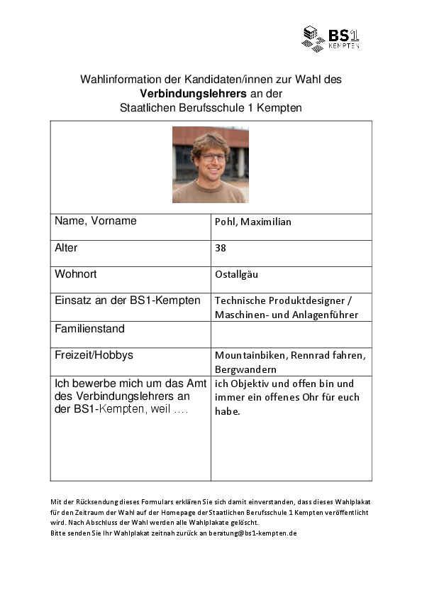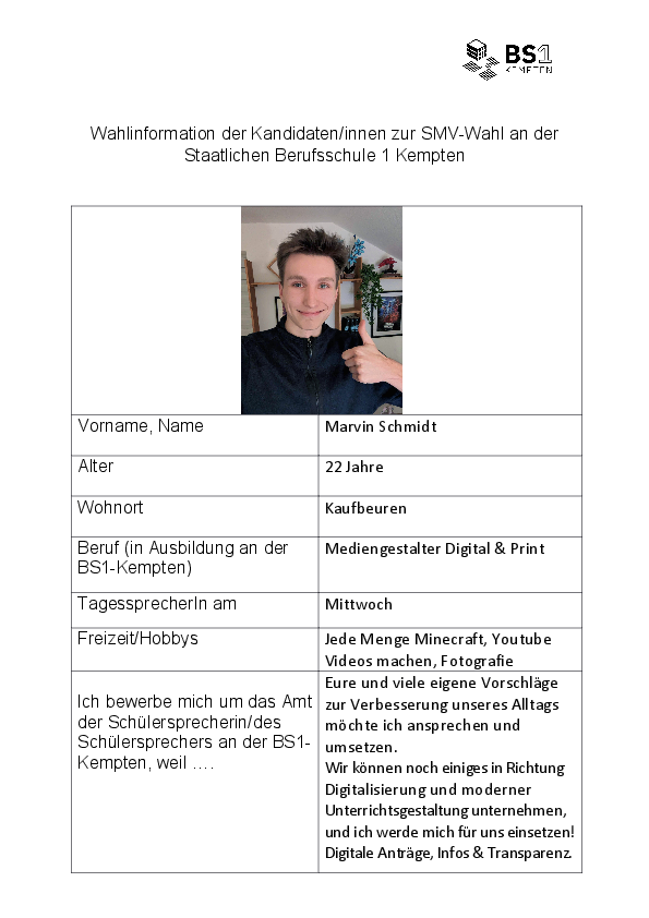 Wahl der Schülersprecherinnen und Schülersprecher sowie der Verbindungslehrkräfte an der Staatlichen Berufsschule 1 Kempten im Schuljahr 2025/2026