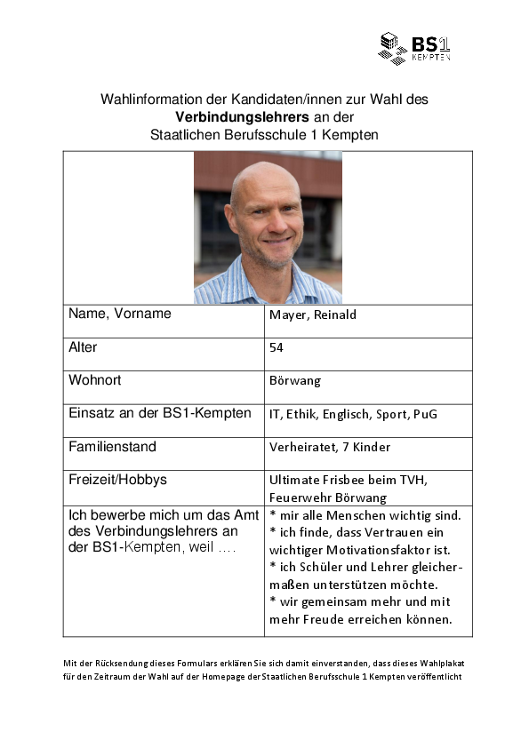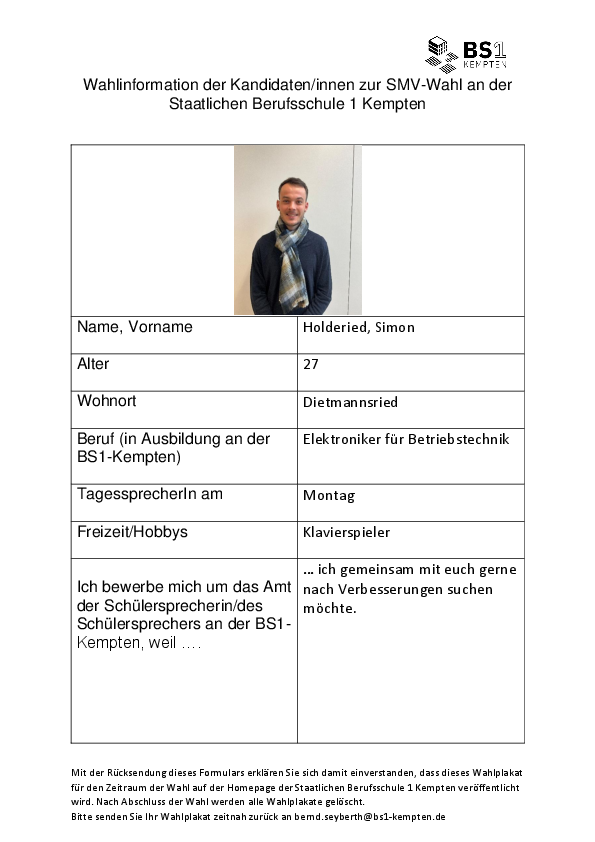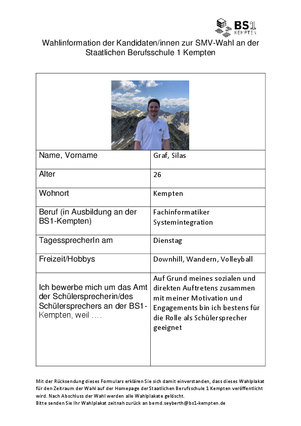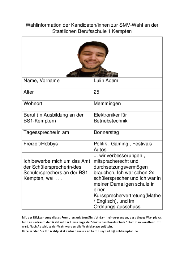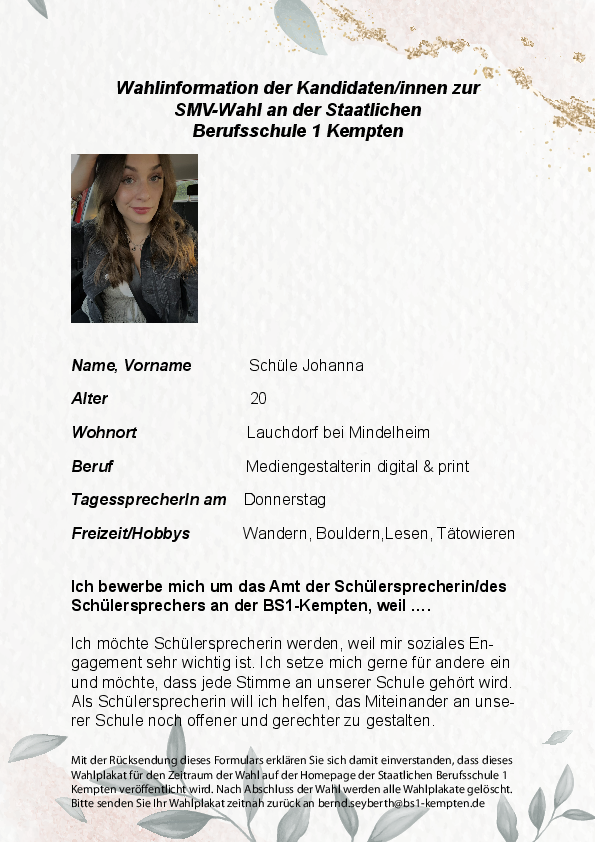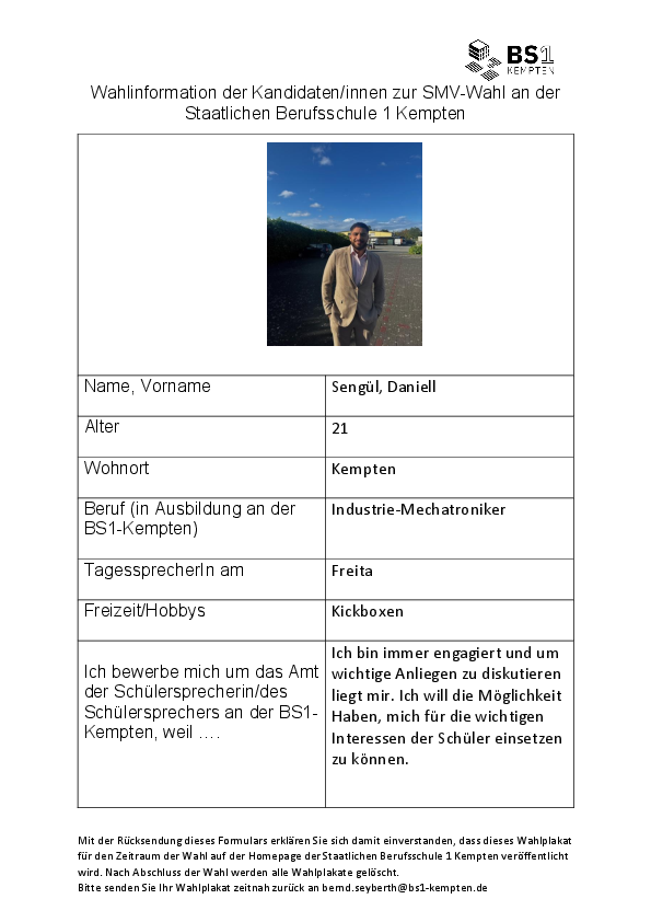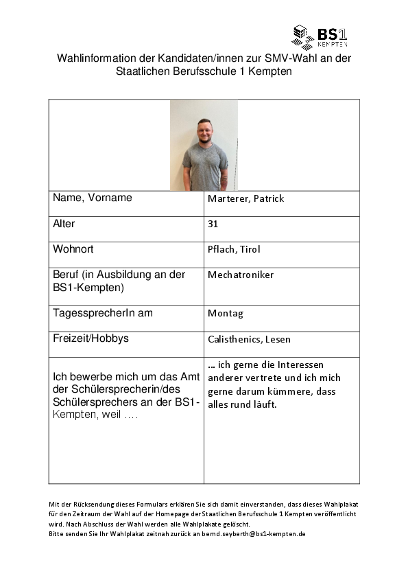 Wahl der Schülersprecherinnen und Schülersprecher sowie der Verbindungslehrkräfte an der Staatlichen Berufsschule 1 Kempten im Schuljahr 2025/2026